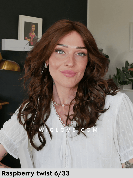Bryce di Jon Renau è una parrucca sintetica lunga e leggermente mossa, uno stile estremamente di tendenza anche grazie alla riga centrale in lace. La possibilità di fare la riga al centro senza affrontare i costi di un monofilamento esteso, è abbastanza rara tra le parrucche.
